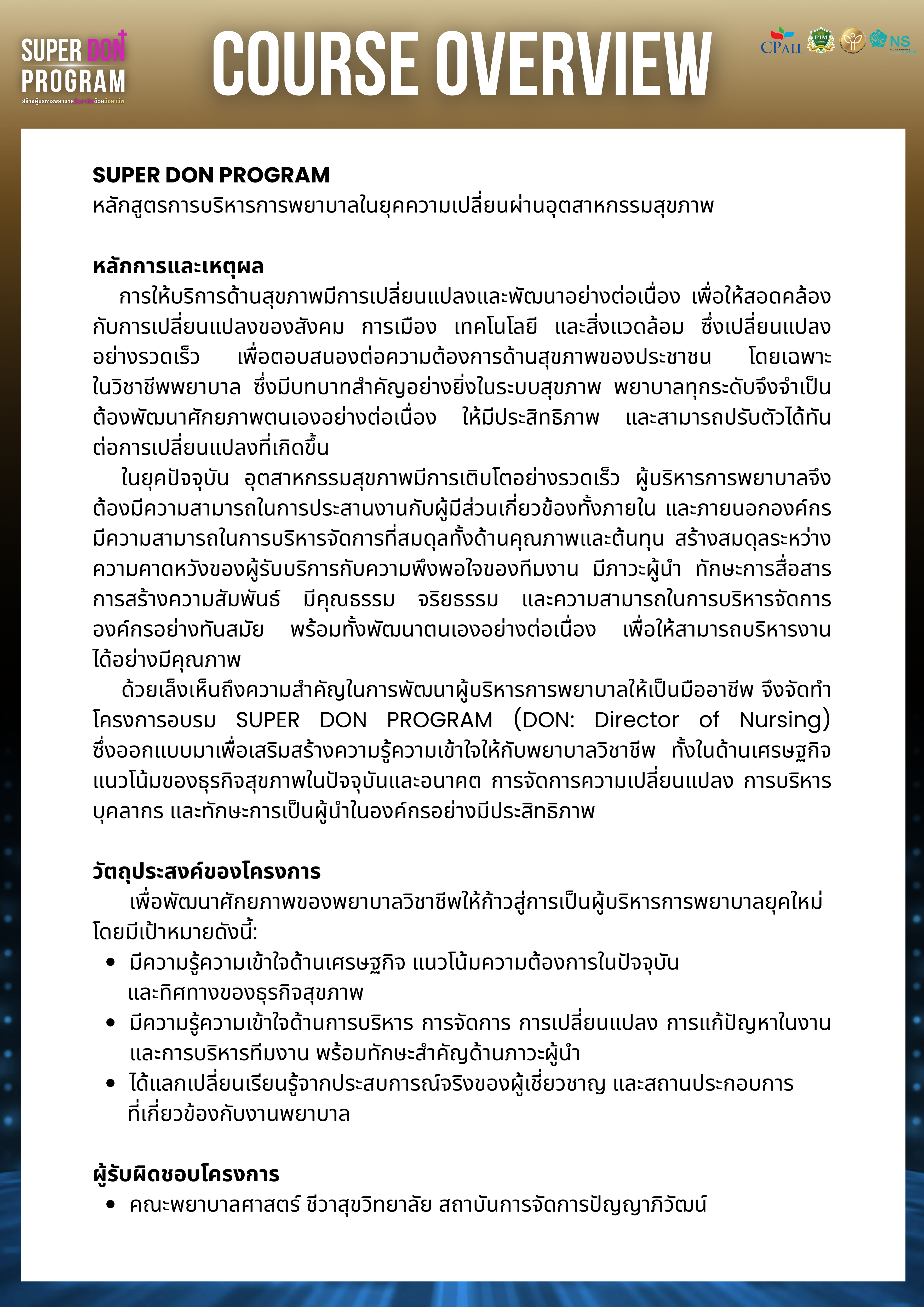 Super DON Program (หลักสูตรผู้บริหารทางการพยาบาล)