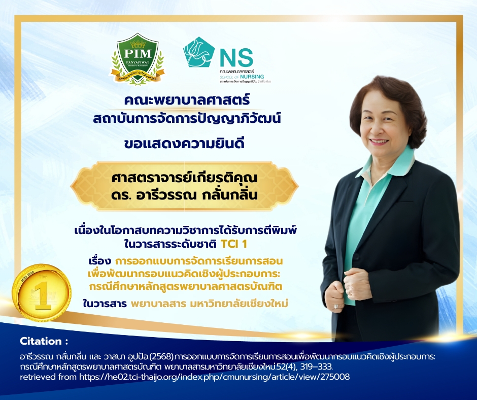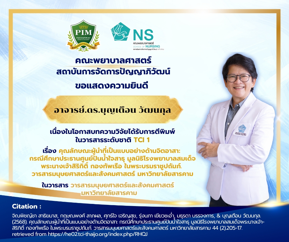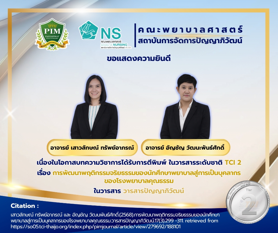 คณะพยาบาลศาสตร์ PIM สร้างความภาคภูมิใจ คณาจารย์และบุคลากรได้รับการตีพิมพ์ผลงานวิชาการ ประจำปี 2568